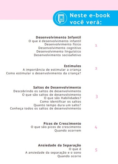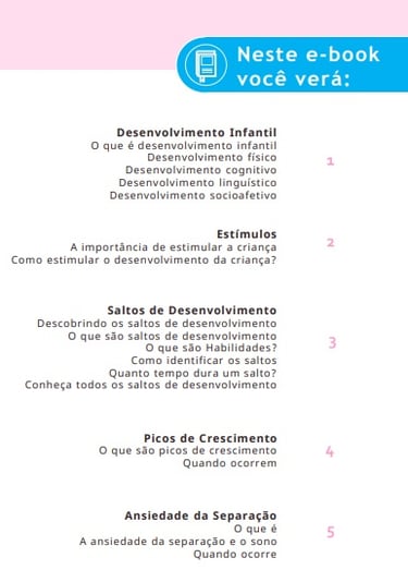 O ebook sobre saltos de desenvolvimento do bebê me ajudou a entender melhor meu filho. Recomendo!